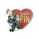 Claim the title of "Queen of Bowling" by wearing this Goldtone and Red Lapel-Pin, showing a bowling pin dressed in purple and black as a Queen. Approximate size - 1" x 3/4".